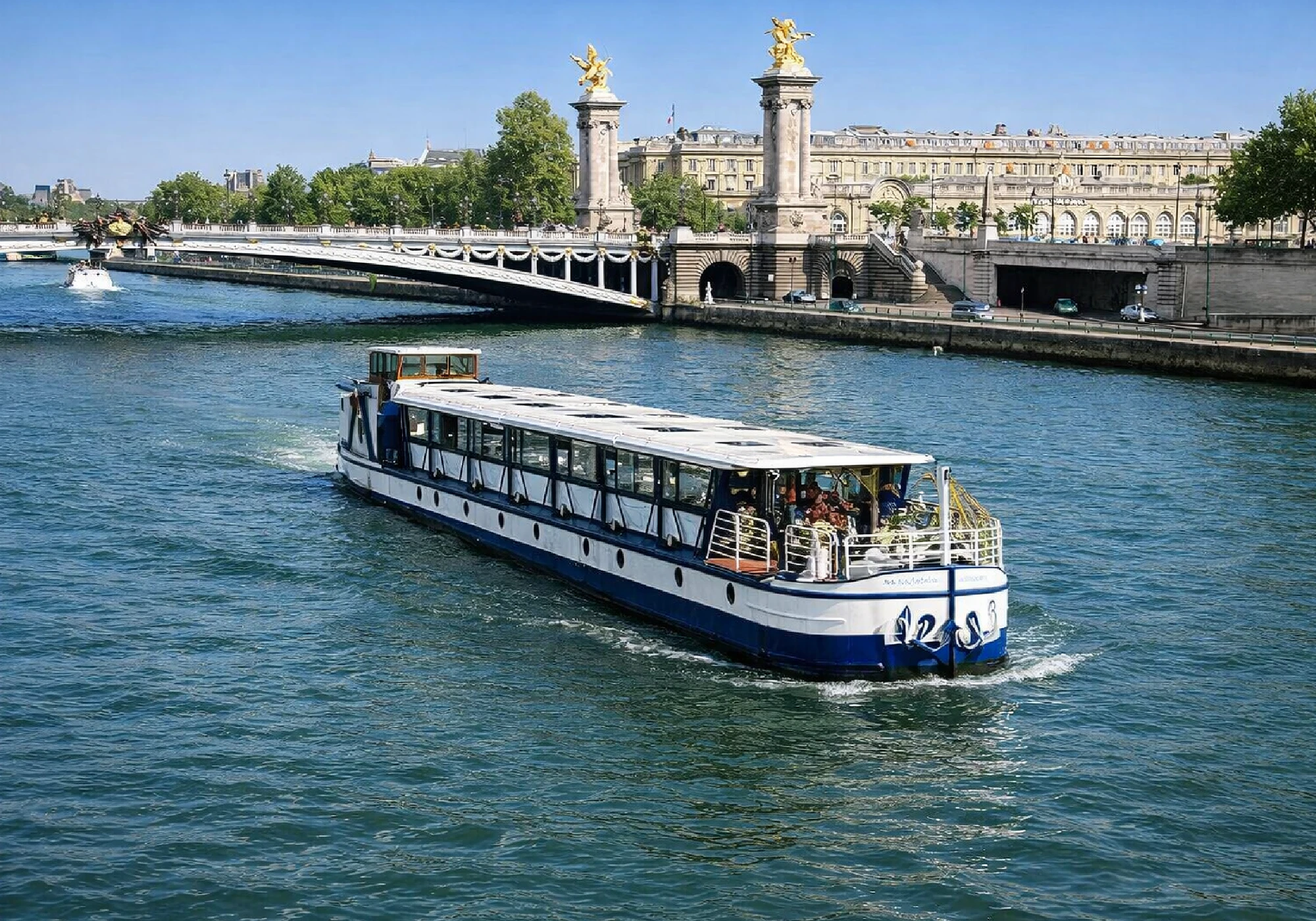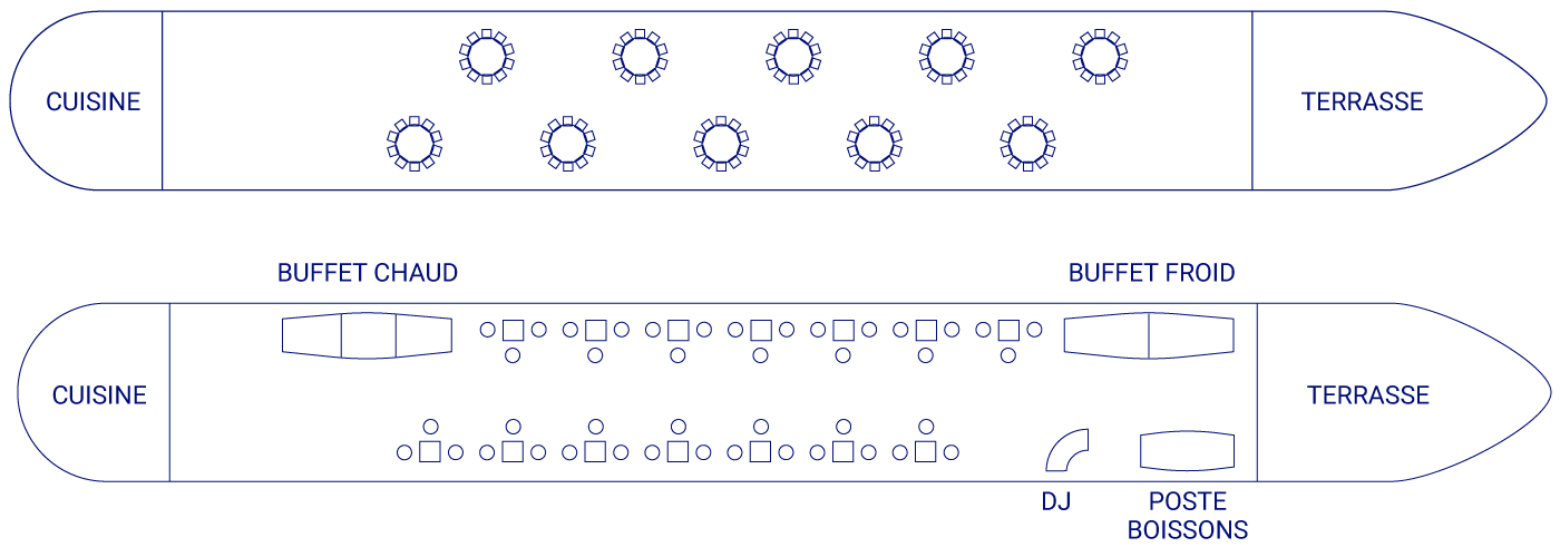 Le Pont Principal du Grand Bleu vous accueille dans une atmosphère élégante et lumineuse. Cet espace de réception d’environ 160 m², prolongé par une terrasse en bord de Seine, offre un cadre à la fois prestigieux et convivial, idéal pour accueillir vos mariages, séminaires, soirées d’entreprise ou cocktails privés.