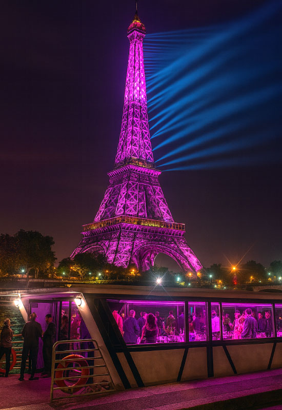 Embarquez à bord du Grand Bleu pour une soirée festive mêlant gastronomie, musique et vue panoramique sur les monuments illuminés. Une expérience élégante et inoubliable pour entrer dans la nouvelle année dans un cadre féerique.