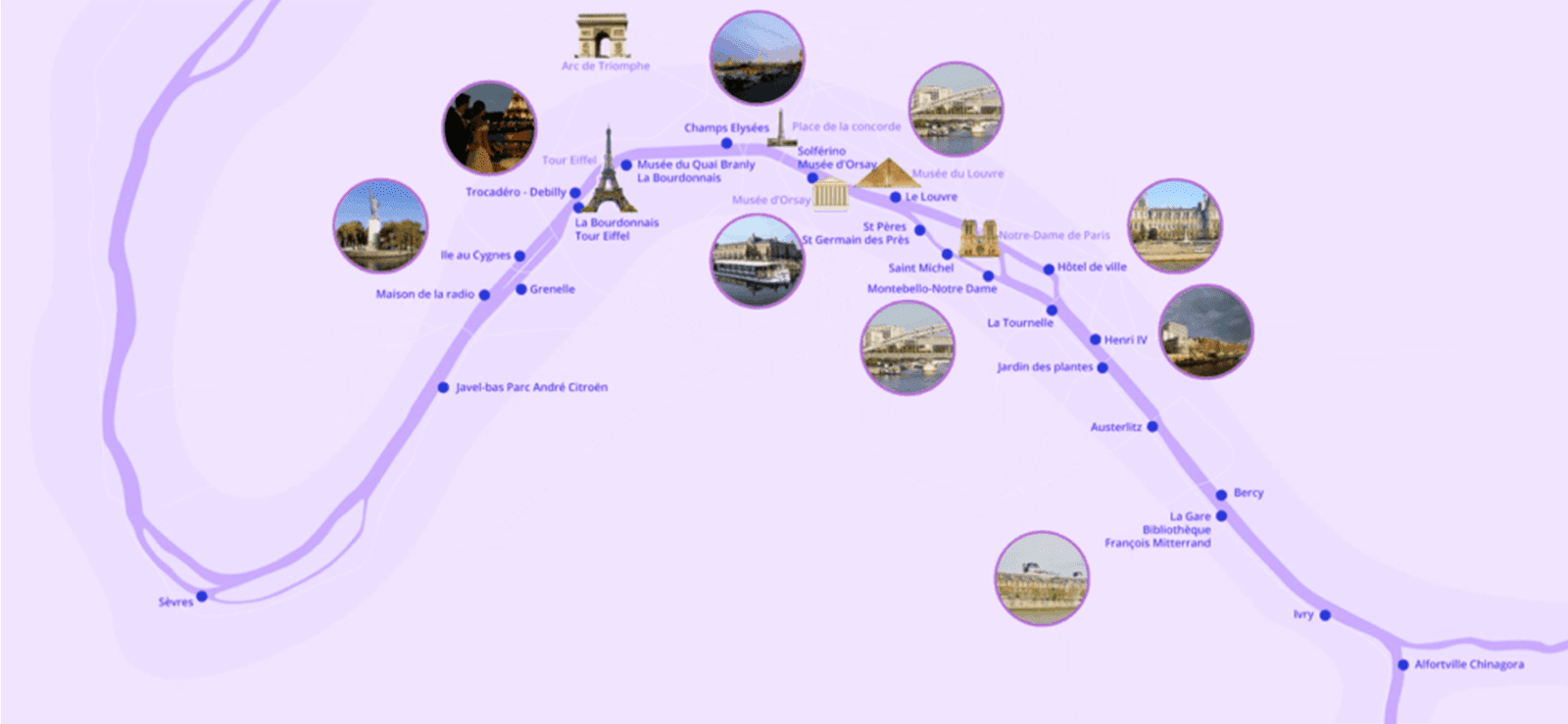Nos croisières traversent les plus beaux quartiers de Paris, de la Tour Eiffel à Notre-Dame, en passant par le Louvre. Vous avez la possibilité de choisir votre port d’embarquement (Départ Rive Gauche ou Rive Droite) selon disponibilité.